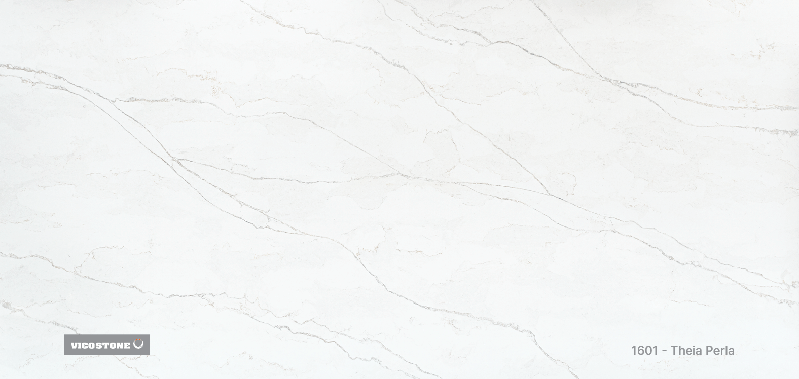 Featuring Theia Perla surface. Veins move slowly, like winter light settling across a calm room.